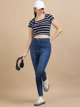 High Waist Straight Fit Stretchable Jeans-Light Blue